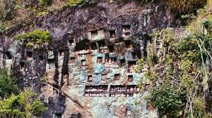 • Deskripsi Menarik: Dikenal sebagai “Rumah Para Arwah”. Tebing batu besar diukir menjadi liang-liang kubur kuno. Di depannya dipajang Tau-Tau (patung kayu menyerupai jenazah) yang menghadap ke lembah, melambangkan pengawasan arwah leluhur.