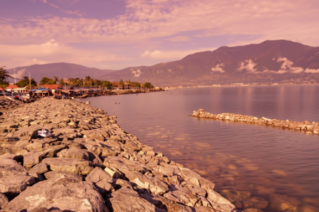 Deskripsi Menarik: Terletak tepat di jantung Kota Palu, Pantai Talise menawarkan pemandangan pegunungan yang mengelilingi Teluk Palu. Setelah masa pemulihan pasca-tsunami 2018, kawasan ini kembali menjadi pusat aktivitas warga untuk bersantai, berolahraga, dan menikmati angin laut. Keunikan utamanya adalah garis pantai yang sejajar dengan jalan raya utama, menjadikannya tempat nongkrong paling populer di kota.