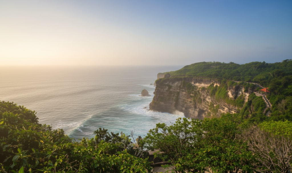 Rute Alternatif dari Kota Terdekat: Dari arah Kuta atau Seminyak, melewati Jl. Sunset Road menuju arah Jimbaran, lalu terus mendaki ke arah Bukit menuju kawasan Pecatu.